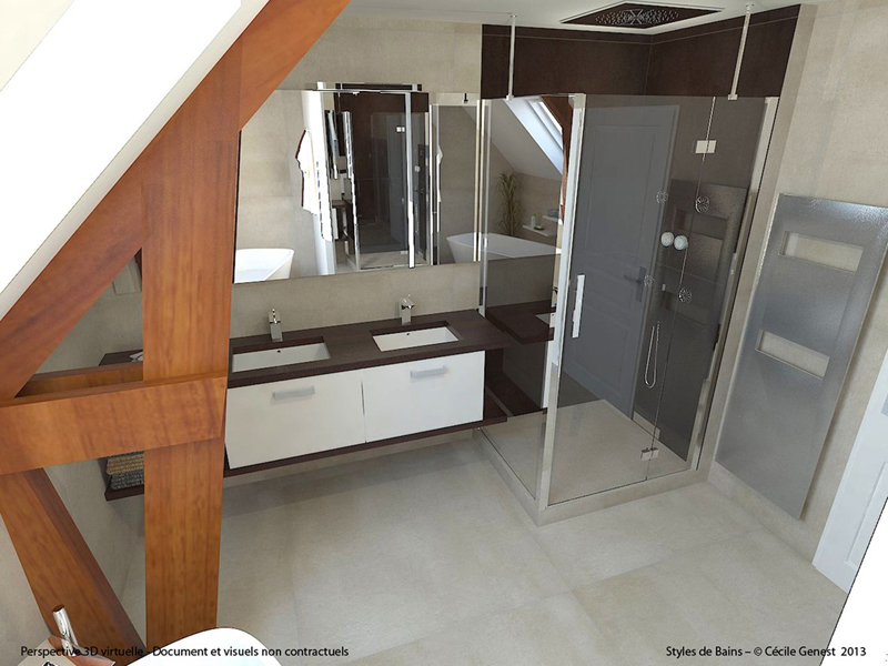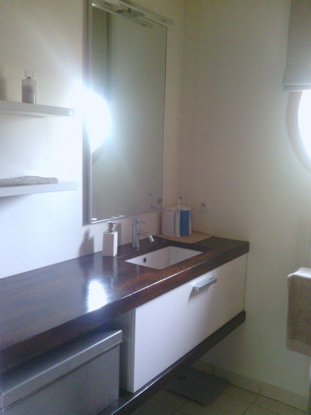 une salle de bain "standing", avec des équipements modernes pour retouver le confort proposé dans l'hôtellerie haut de gamme. |