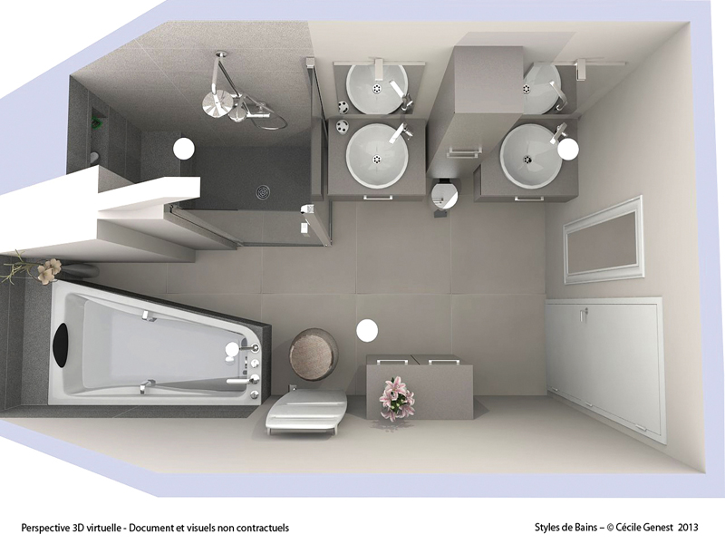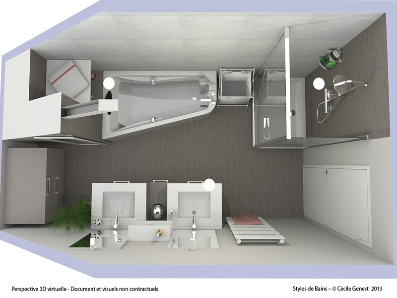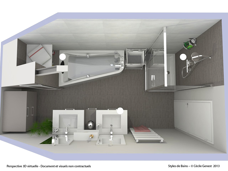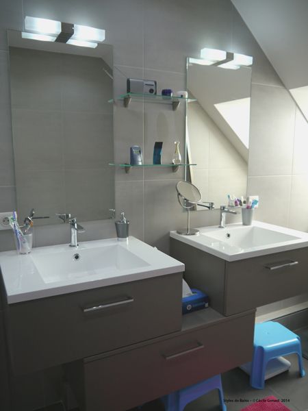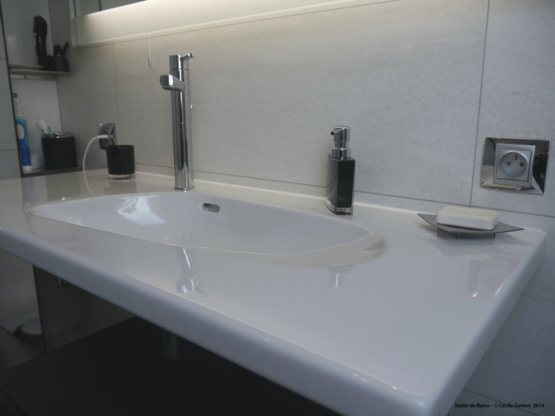 redonner un style plus actuel à cette salle de bain familiale et privilégier la fonctionnalité et l'entretien de cette pièce. |